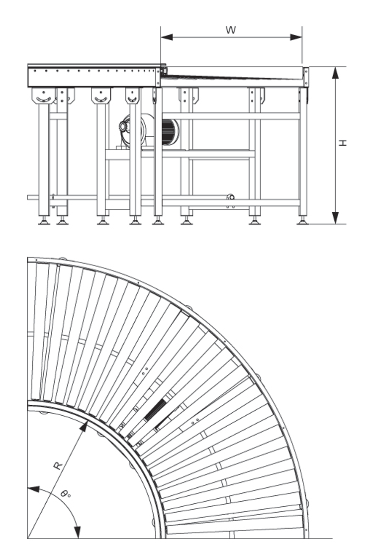* 适用于各类箱、包、托盘等件货的转弯输送,散料、小件物品或不规则的物品需放在托盘上或周转箱内输送。
